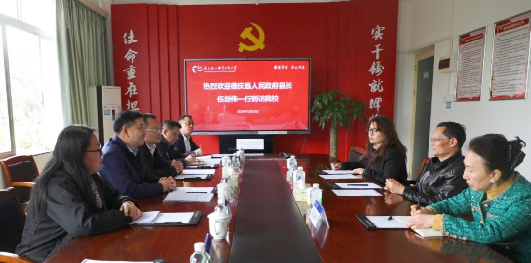 12月25日,德庆县委副书记、县长伍剑伟率队到学校开展“双百行动”结对调研,德庆县委副书记胡小攀、副县长孙燕鹏(挂职)参加调研。学校党委书记杜安国在新港校区办公楼二楼进行接待。